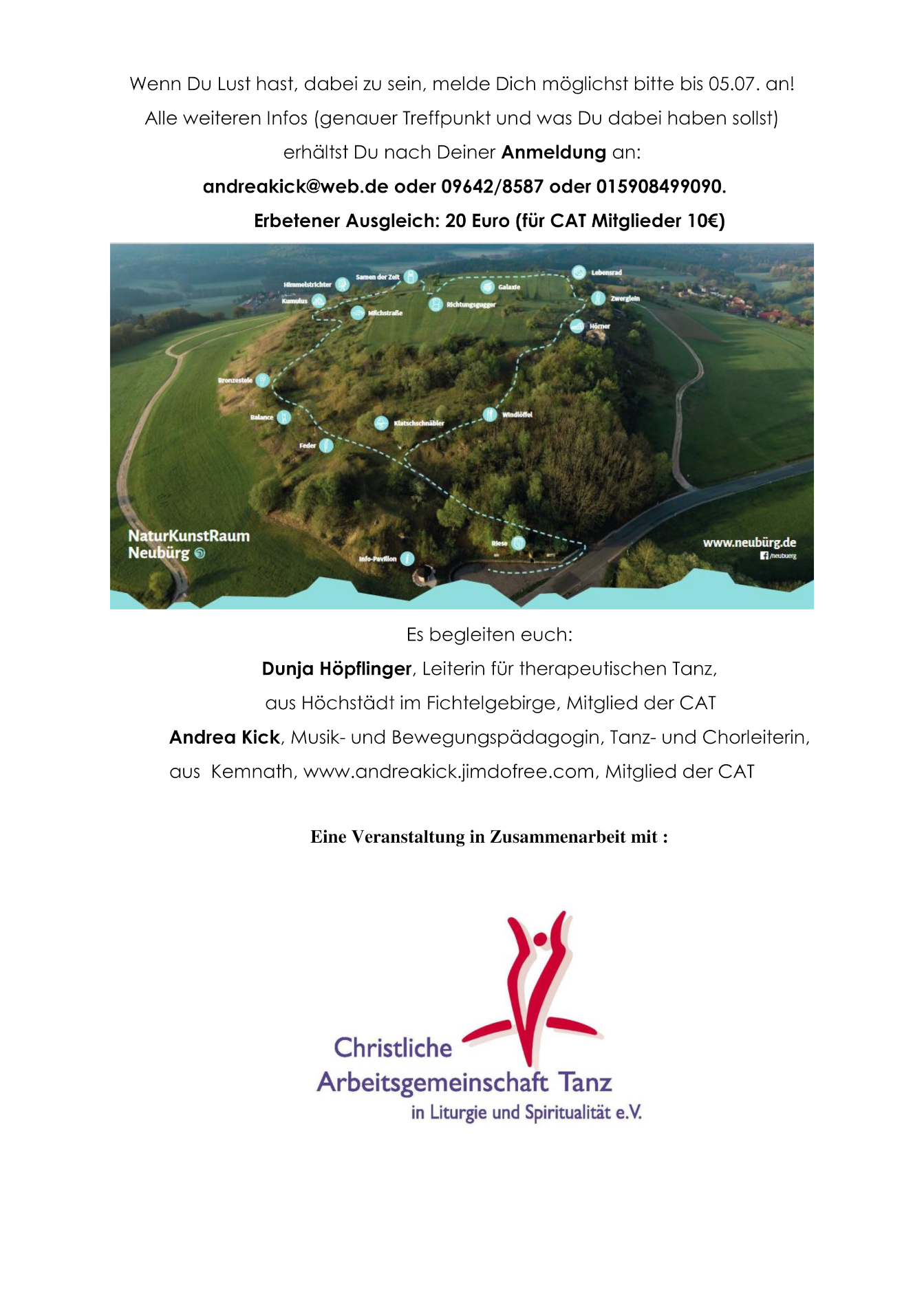 Kontakt: Andrea Kick, andreakick@web.de, Tel: 09642 8587